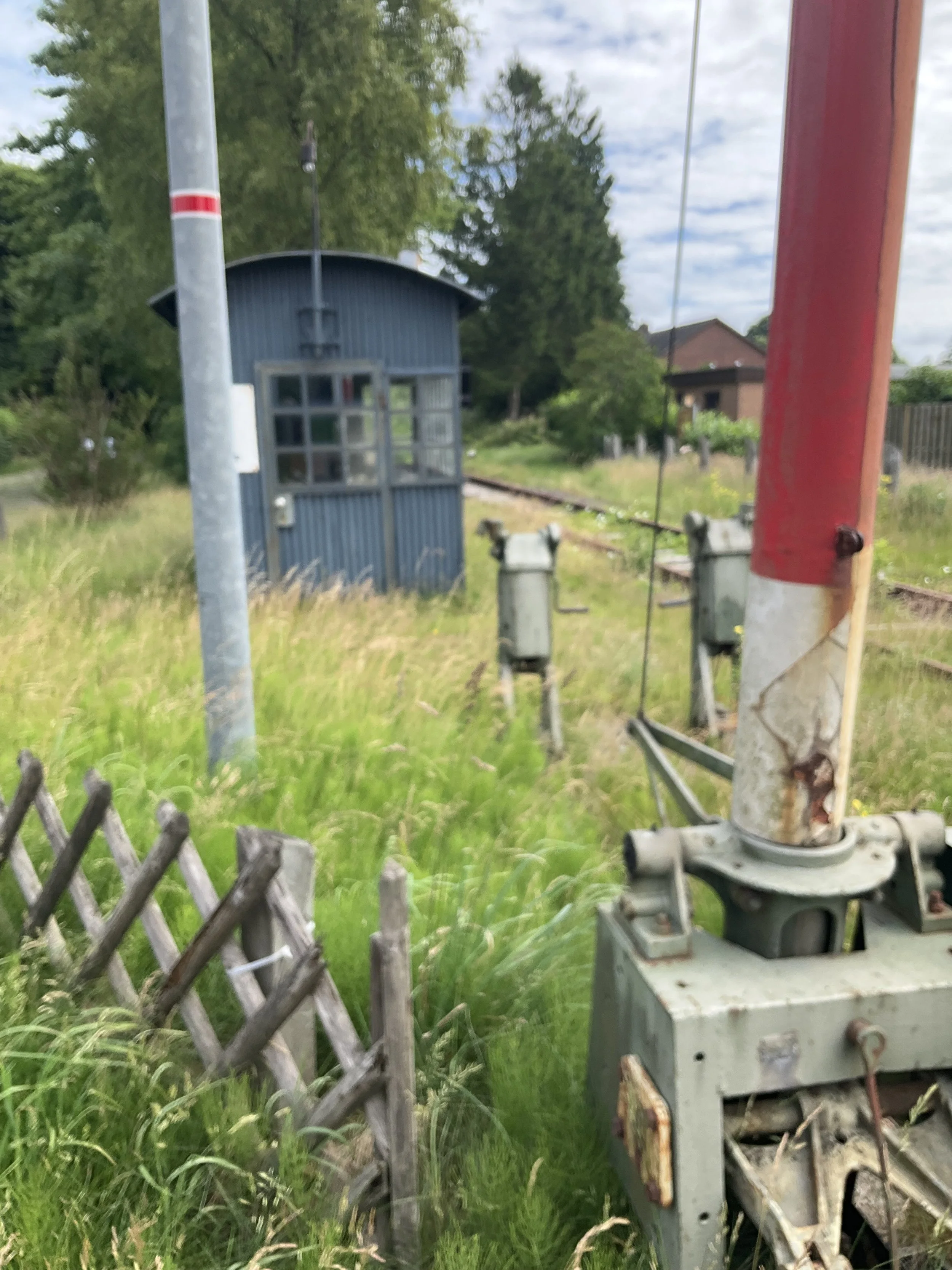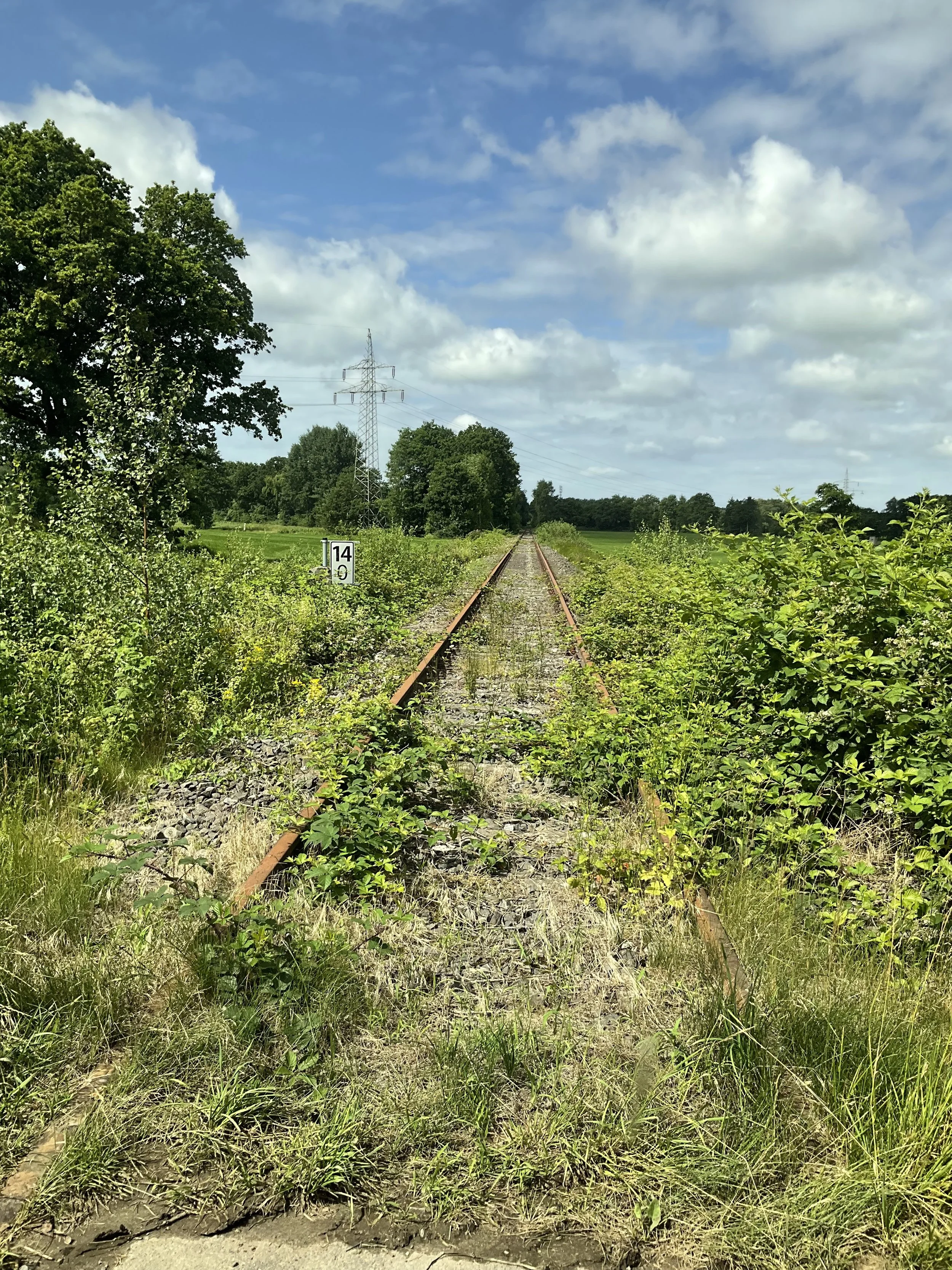 Zunächst einmal ist gut zu sehen, dass die Strecke aktuell stark bewachsen ist. Damit hier wieder ein Zug rollt, müssen wir einen Freischnitt machen.